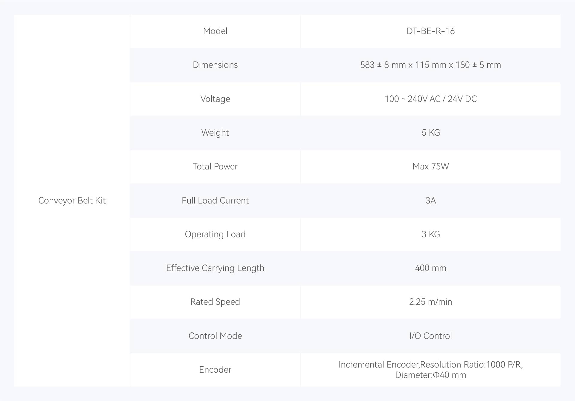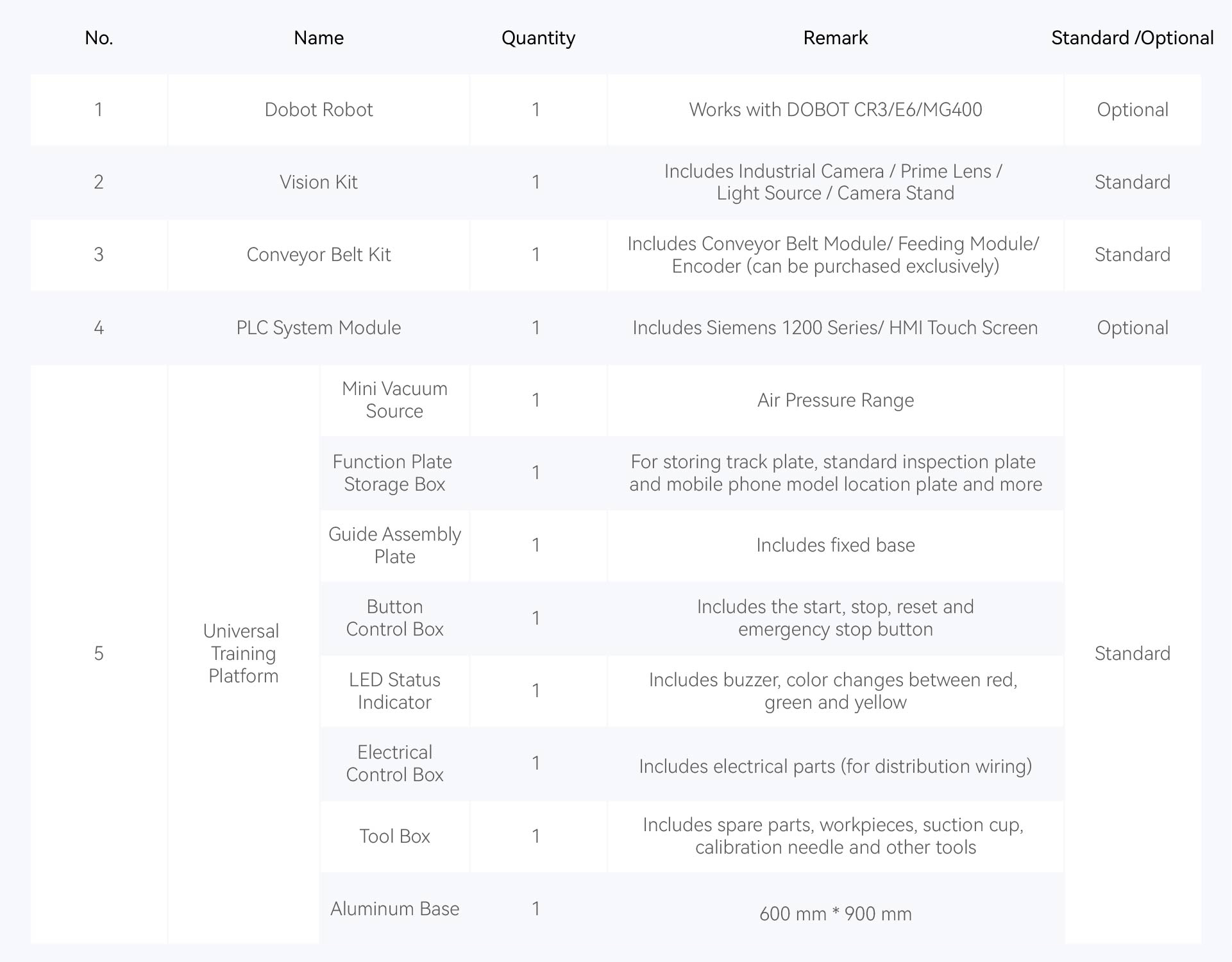 The system covers topics such as robotic system, robotic vision system and optional PLC modular system. Users can deal with the majority of automation tasks after learning. The Conveyor Belt Kit can be used independently with the robotic arm itself.