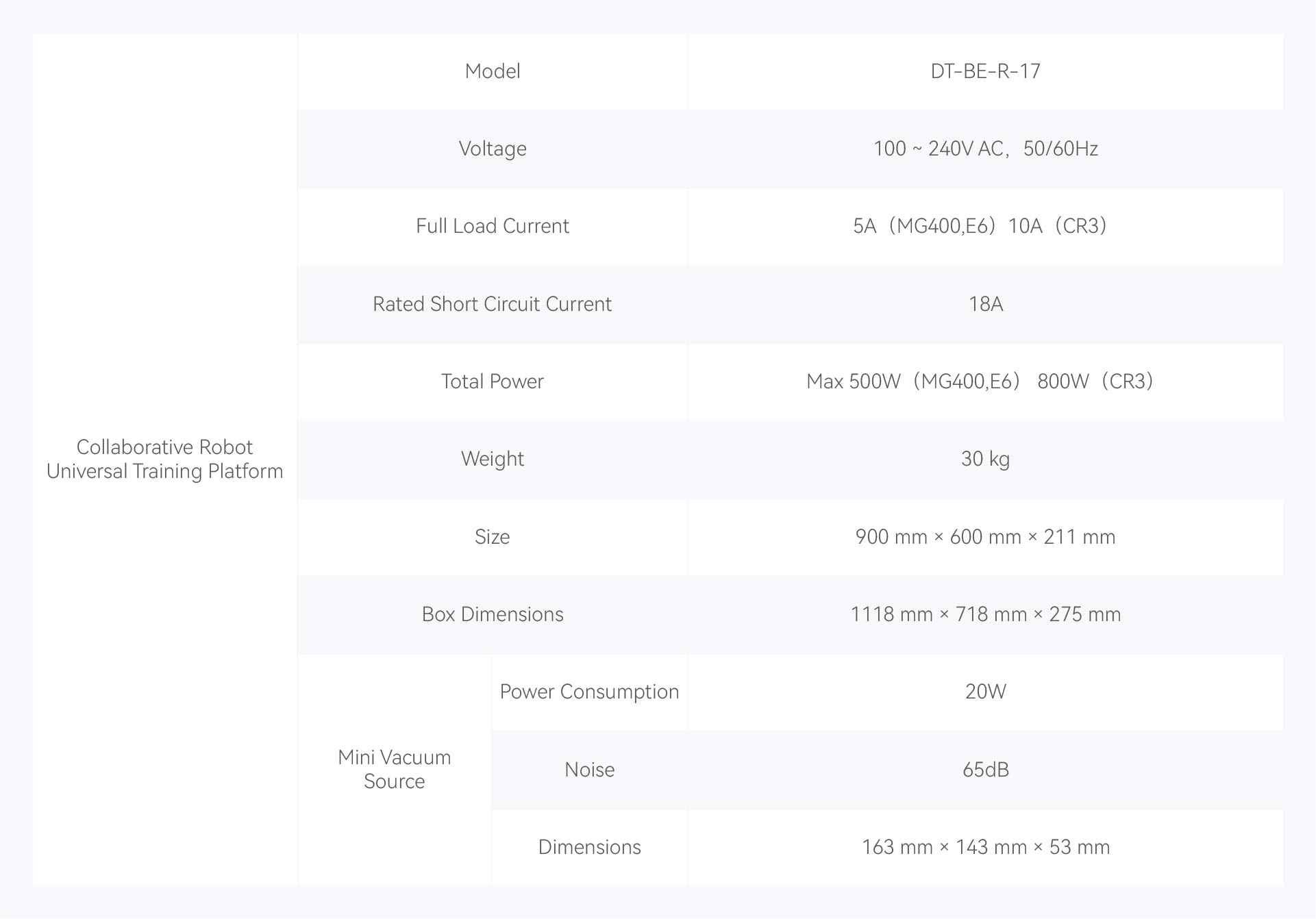 Collaborative Robot Universal Training Platform is a teaching platform for vocational schools and enterprise training which integrates a robots, control system, vision system, conveyor belt and other components. It adopts a modular design and can be combined flexibly and easily for automation simulation, such as object detection, grabbing, handling, palletizing, and assembly, as well as teaching projects such as robot system calibration, trajectory tracking, and communication control, helping students acquire skills related to smart robot systems, and improve practical and innovative capabilities effectively.